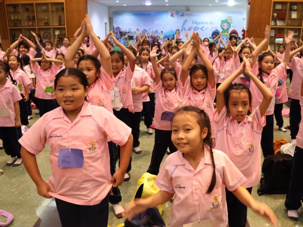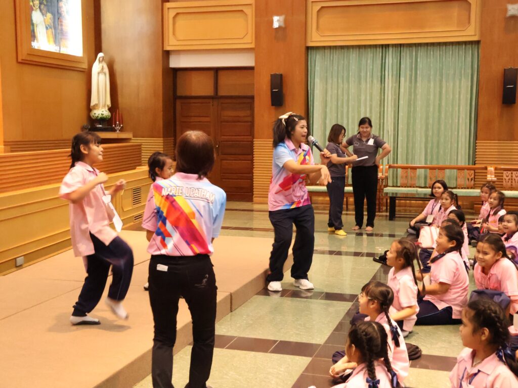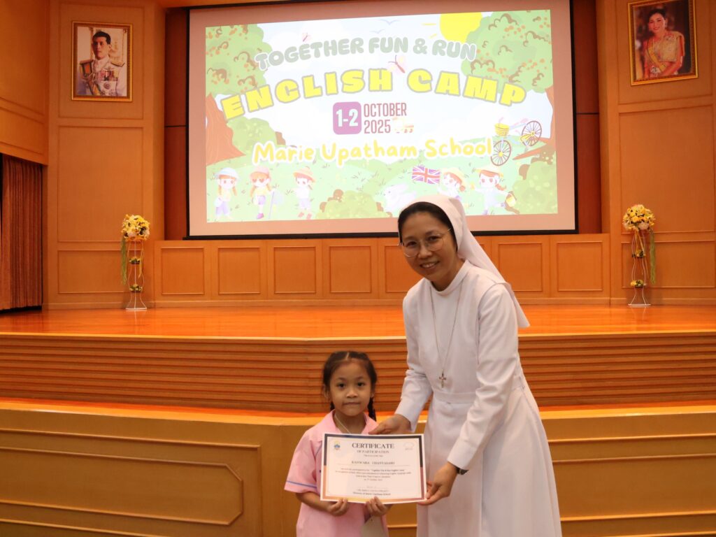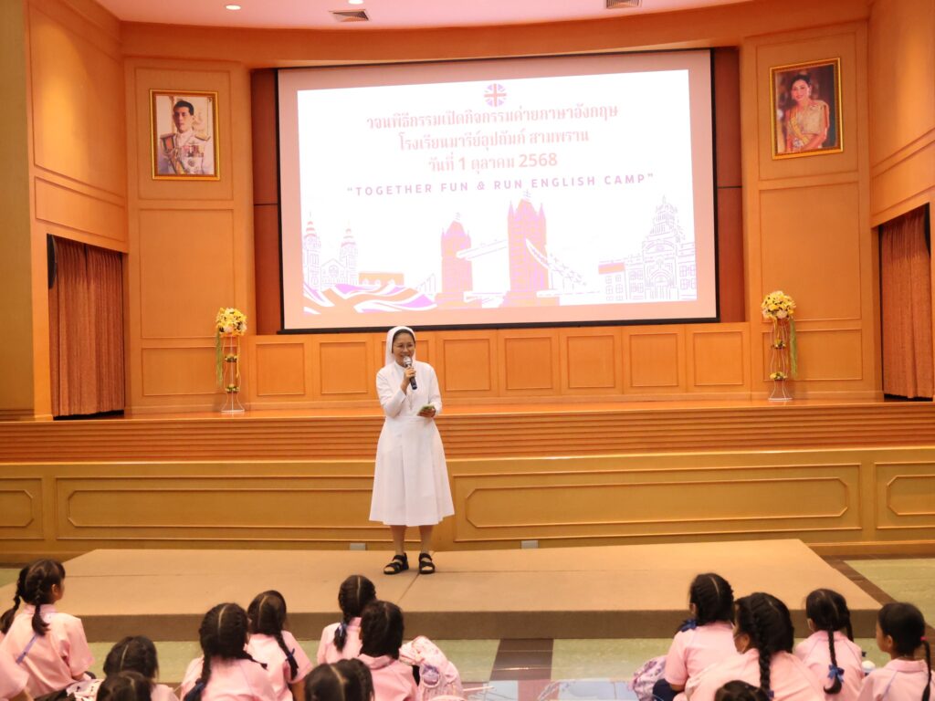 วันที่ 1 ตุลาคม 2568 กลุ่มสาระการเรียนรู้ภาษาต่างประเทศ โรงเรียนมารีย์อุปถัมภ์ ได้จัดกิจกรรมค่ายภาษาอังกฤษ “Together Fun & Run English Camp” สำหรับนักเรียนระดับชั้นประถมศึกษาปีที่ 1–3 ณ บ้านธารพระพร อำเภอสามพราน โดยได้รับความร่วมมือจากคณะครูจากบริษัท Make a Wit ร่วมจัดกิจกรรมการเรียนรู้ พร้อมทั้งมีคุณครูประจำชั้นและครูผู้ช่วยดูแลอย่างใกล้ชิด นักเรียนเข้าร่วมกิจกรรมจำนวนกว่า 119 คน กิจกรรมเริ่มต้นด้วยพิธีเปิด โดยนักเรียนร่วมภาวนาและรับฟังโอวาทจาก ซิสเตอร์กาญจนา เดชาเลิศ ซึ่งได้ฝากข้อคิดที่เป็นประโยชน์แก่นักเรียน 3 ประการ ได้แก่