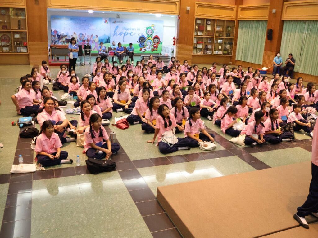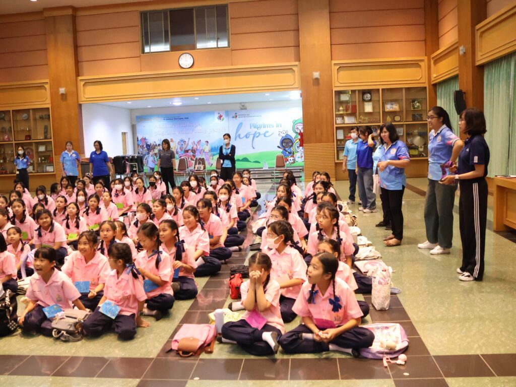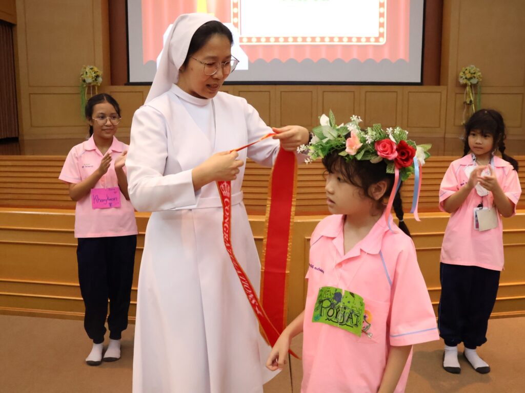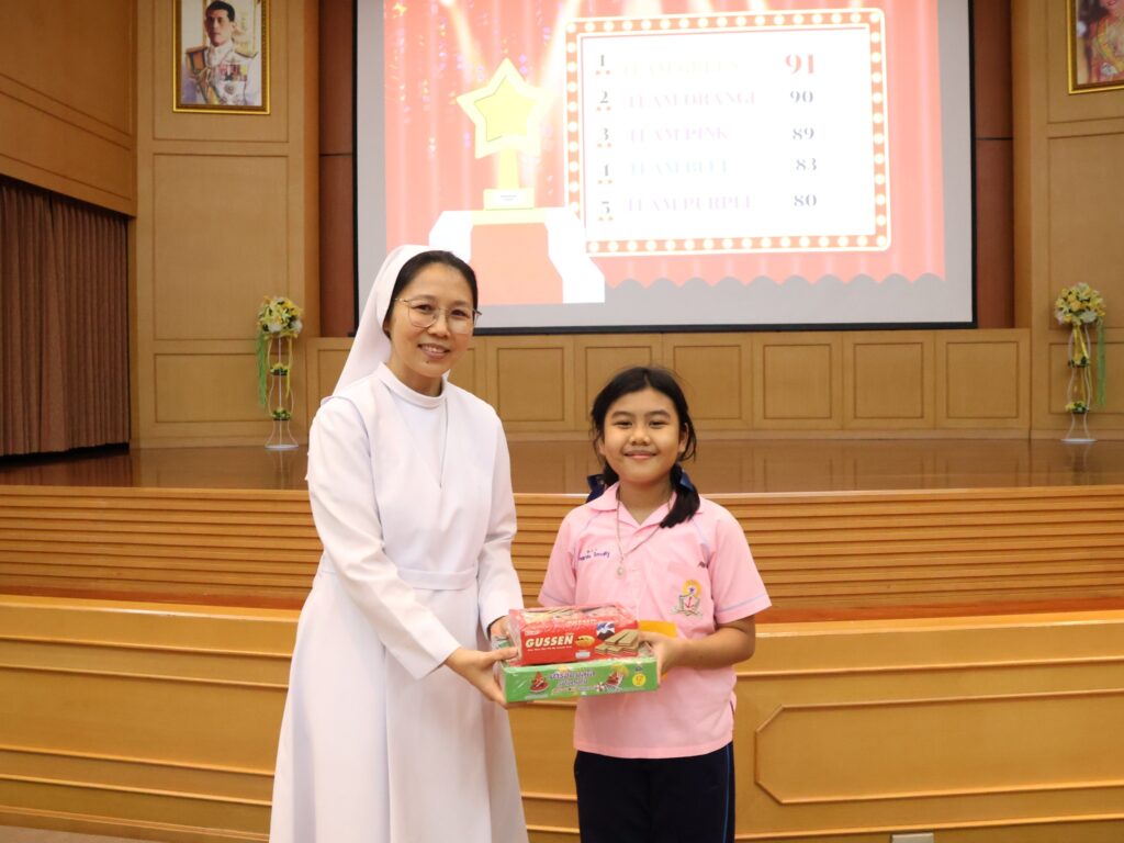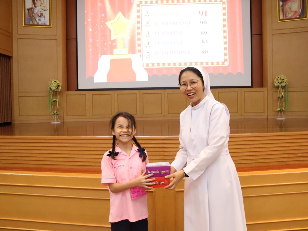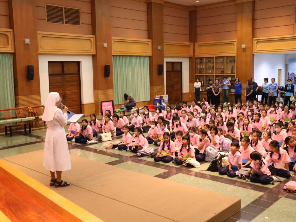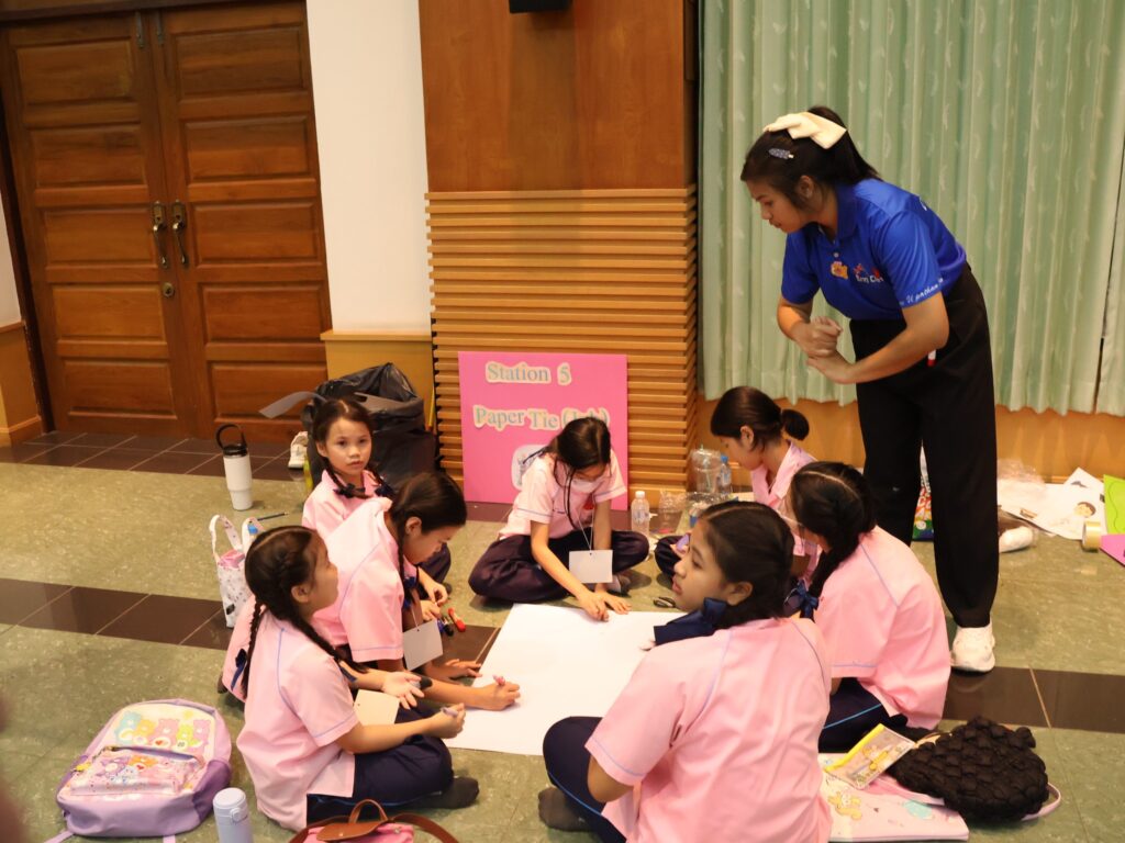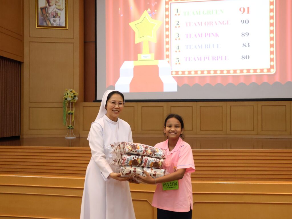วันที่ 2 ตุลาคม 2568 กลุ่มสาระการเรียนรู้ภาษาต่างประเทศ โรงเรียนมารีย์อุปถัมภ์ ได้จัดกิจกรรมค่ายภาษาอังกฤษสำหรับนักเรียนระดับชั้นประถมศึกษาปีที่ 4–6 ณ บ้านธารพระพร อำเภอสามพราน โดยมีคุณครูจากบริษัท Make a Wit มาร่วมจัดกิจกรรม พร้อมด้วยคุณครูประจำชั้นและครูผู้ช่วยคอยดูแลอย่างใกล้ชิด มีนักเรียนเข้าร่วมทั้งสิ้น 129 คน กิจกรรมเริ่มต้นด้วยการภาวนาและรับฟังข้อคิดจากซิสเตอร์กาญจนา เดชาเลิศ ที่ได้ฝากข้อคิดเพื่อเป็นแรงบันดาลใจแก่นักเรียน ได้แก่