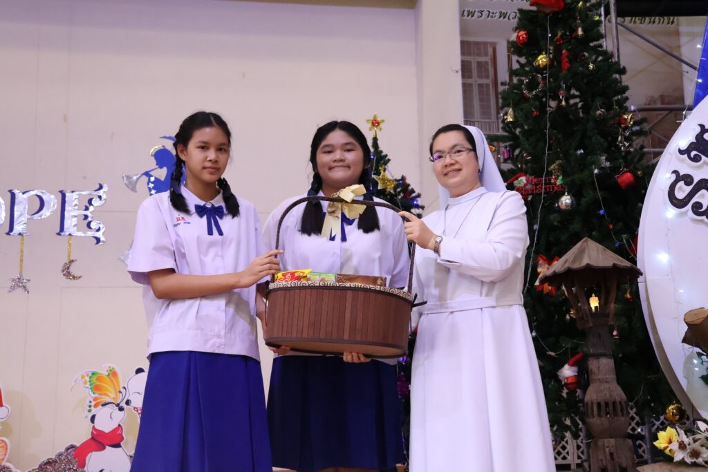 🎁💖 นอกจากนี้ ตัวแทนนักเรียนระดับชั้น ป.6 และ ม.1 ได้ร่วมกันมอบกระเช้า “แบ่งปันน้ำใจ” ให้แก่ผู้ยากไร้ เพื่อร่วมเฉลิมฉลองเทศกาลคริสต์มาสอย่างแท้จริง ด้วยหัวใจแห่งความรักและการให้เช่นเดียวกัน 🌟