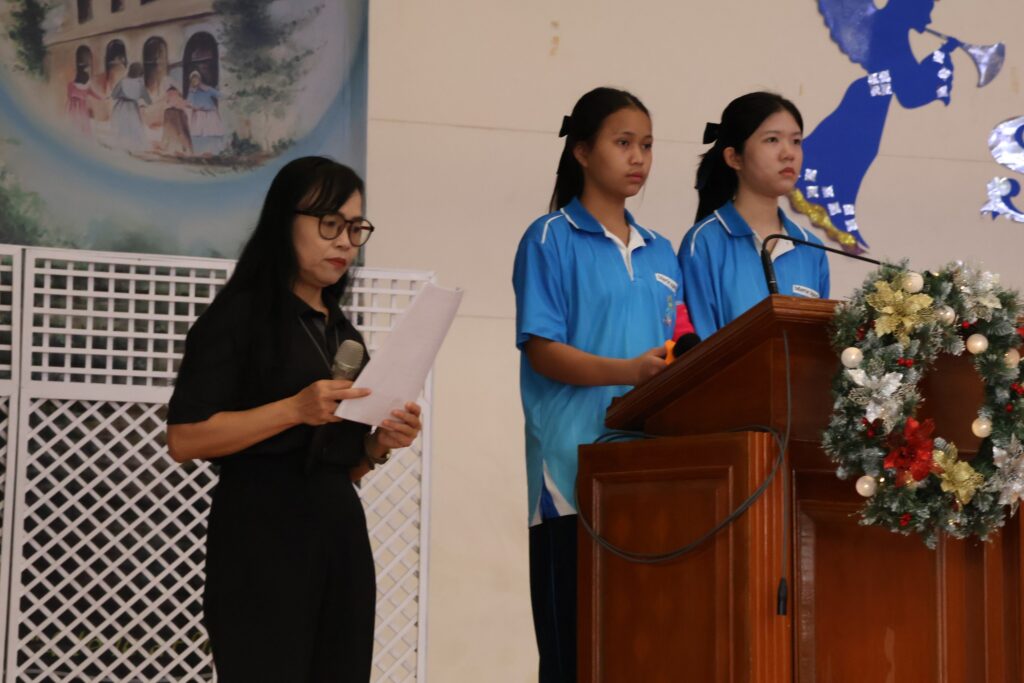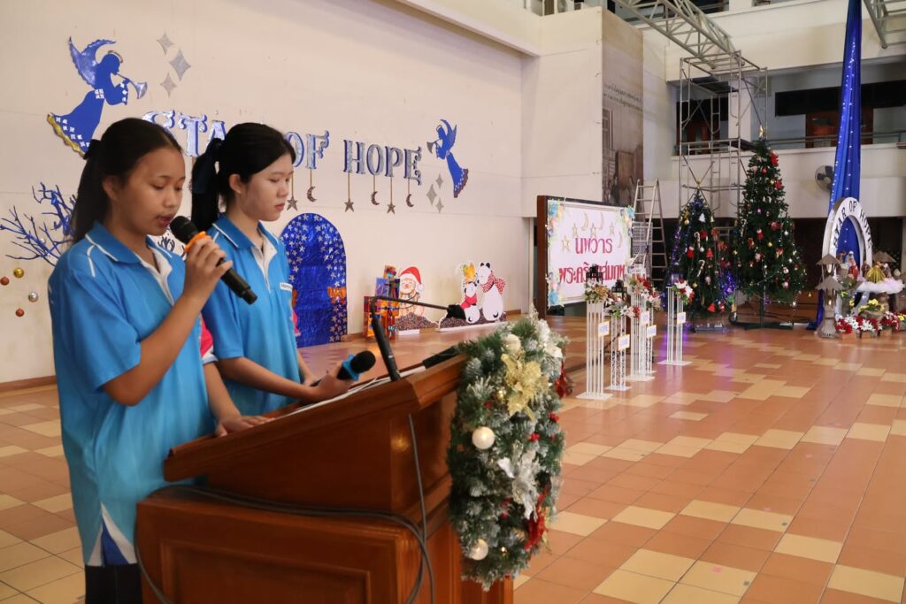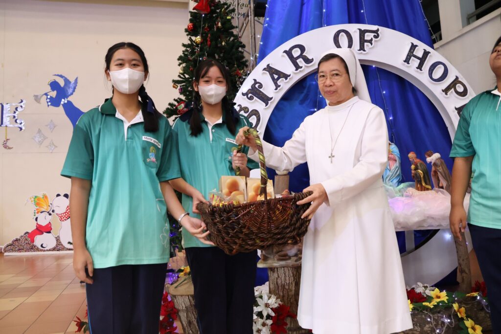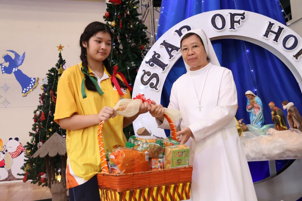 ในโอกาสนี้ ตัวแทนนักเรียนระดับชั้น ม.2 และ ม.3 ได้ร่วมกันมอบกระเช้า “แบ่งปันน้ำใจ” ให้แก่ผู้ยากไร้ เพื่อร่วมเฉลิมฉลองเทศกาลคริสต์มาสอย่างแท้จริง ด้วยหัวใจแห่งความรักและการให้ ![]()