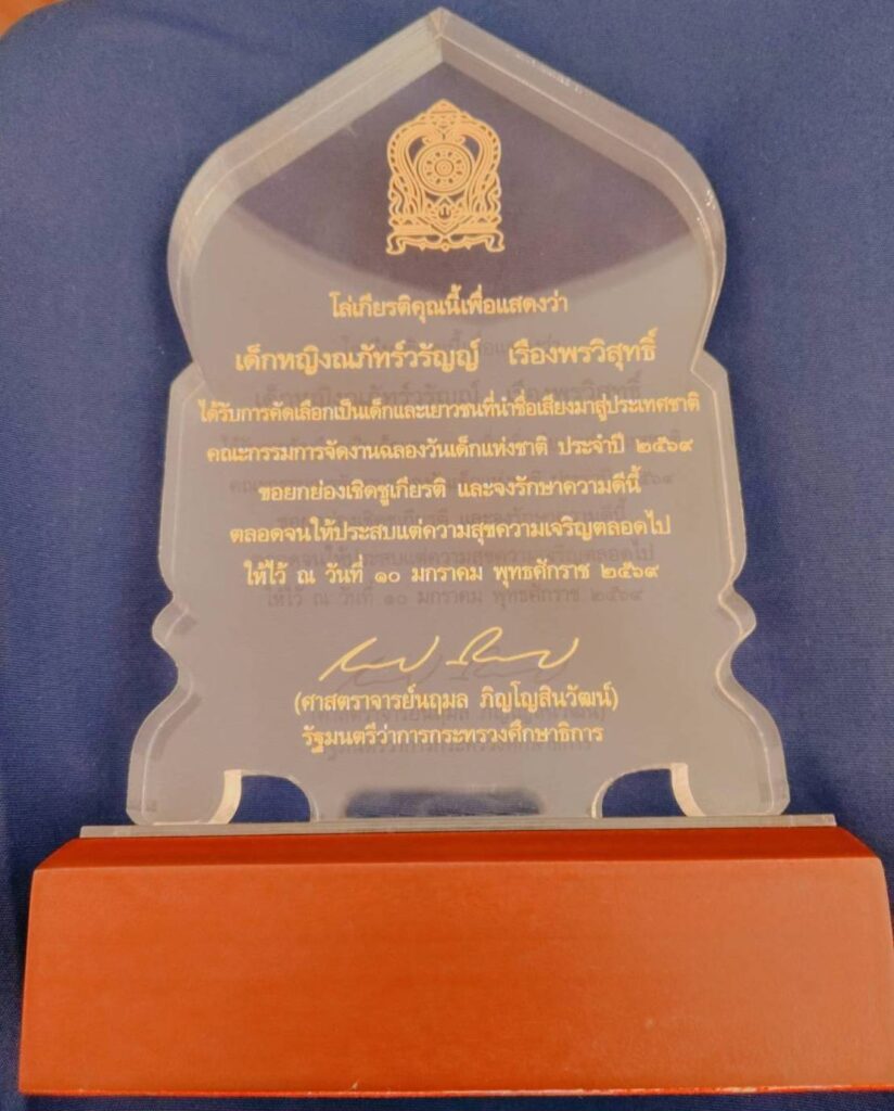 จากการได้รับ รางวัลเด็กและเยาวชนที่นำชื่อเสียงมาสู่ประเทศชาติ ประจำปี 2569