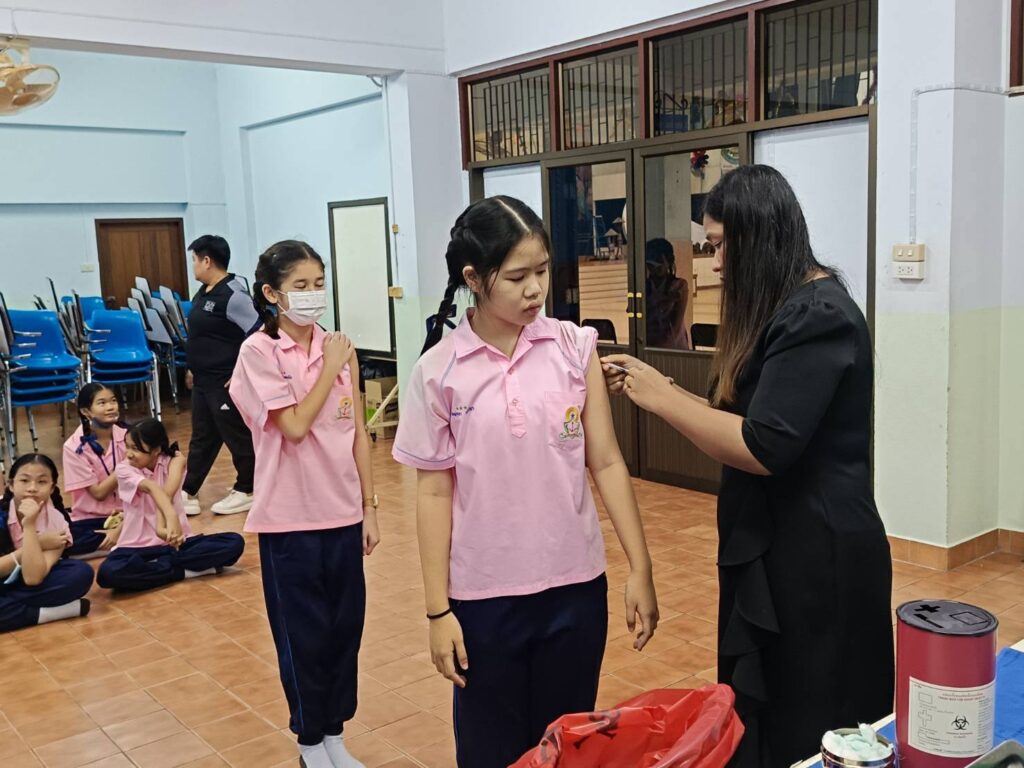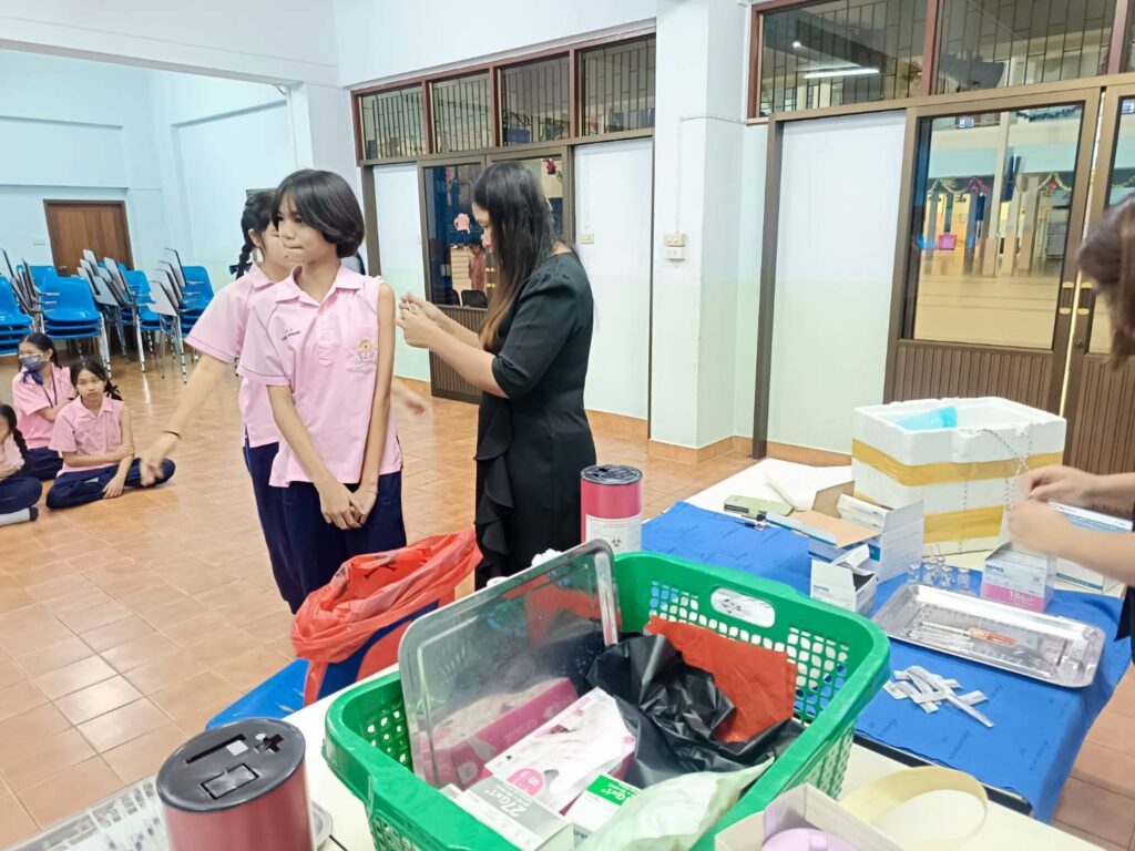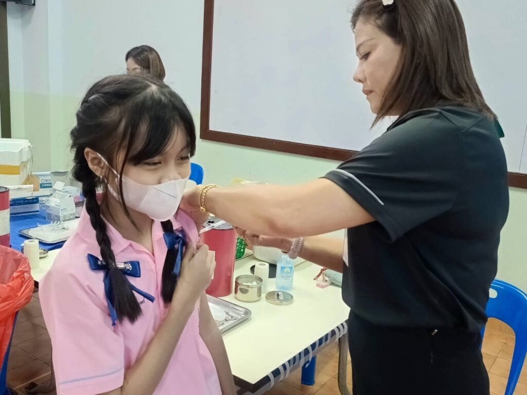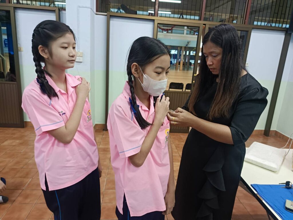 เข้าดำเนินการ ฉีดวัคซีนป้องกันโรคบาดทะยัก ให้แก่นักเรียนระดับชั้น ประถมศึกษาปีที่ 6