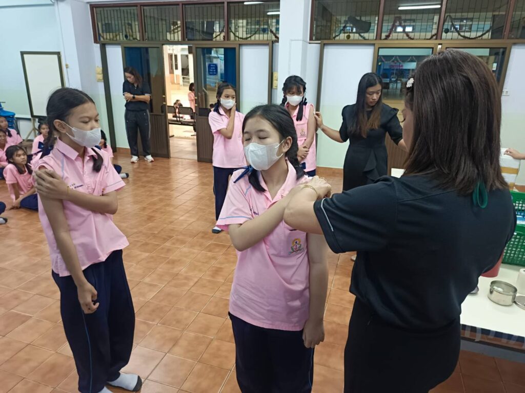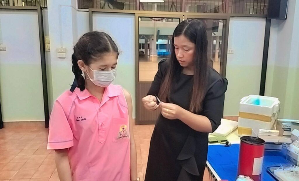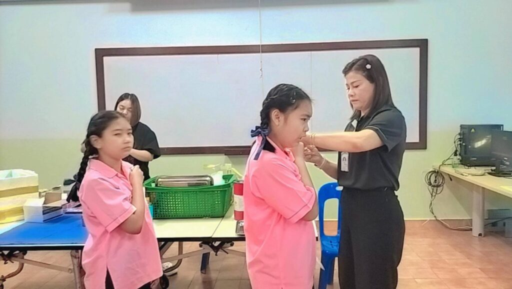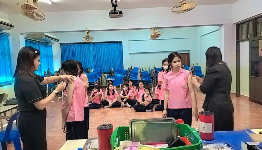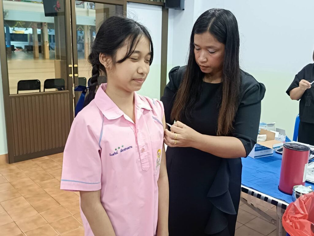 เข้าดำเนินการ ฉีดวัคซีนป้องกันโรคบาดทะยัก ให้แก่นักเรียนระดับชั้น ประถมศึกษาปีที่ 6